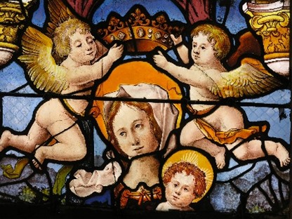 Curiosamente, é na Igreja do Ocidente que os artistas mais se dedicaram a pintar a Virgem Maria com a coroa de uma rainha, enquanto no Oriente os iconógrafos quase sempre a figuram com a cabeça coberta pelo maphorion (ou omophorion), o manto típico da mulher casada que se mostrava em público. Na arte grega, russa e bizantina, a “coroação” tem antes o sentido de “plenitude”, de algo que foi “coroado” por chegar à perfeição, algo bem mais próximo da imagem bíblica de Apocalipse 12.