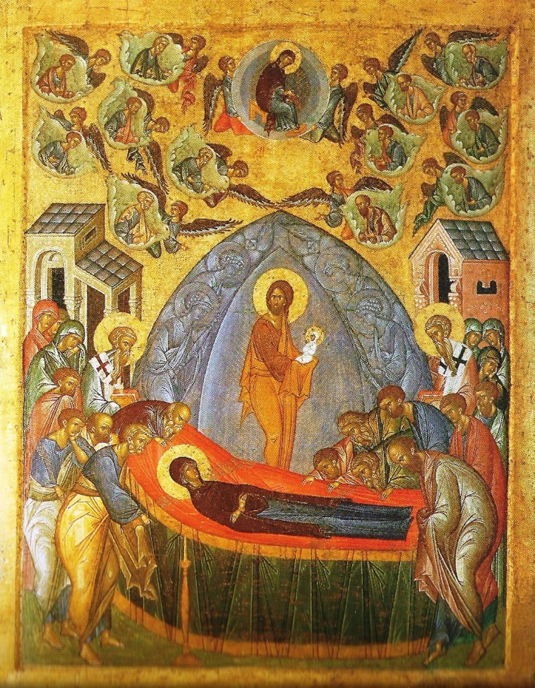Os olhos de um cristão ocidental chegam a se espantar quando contemplam os ícones da “Dormição”, onde a “pequena alma” de Maria descansa no colo do Filho, após o “decurso de sua vida terrestre” (cf. Lumen Gentium,59; Redemptoris Mater, 41). Parece-nos imprevista inversão entre Mãe e Filho, mas apenas repôs em seus devidos lugares o Salvador e a Redimida. Por outro lado, é importante recordar que a escolha do termo “dormição” para o trânsito da Virgem Maria quer acentuar a ideia de que ela “adormeceu” e não sofreu a corrupção da morte antes de ser ressuscitada por seu Filho e elevada ao céu.