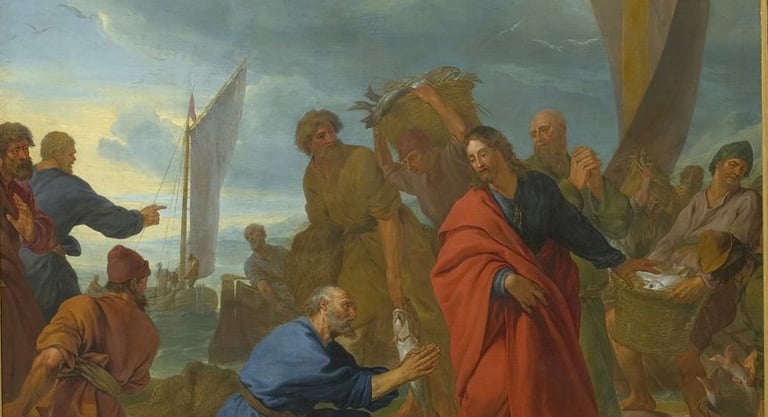 Uma cena à beira do Lago de Genesaré, naquela terra tão árida onde um lago é chamado de mar: o Mar da Galileia. Era de manhã, os pescadores lavavam as redes. Haviam passado a noite escura sem nada pescar. Eles têm a barca vazia, as redes vazias, as mãos vazias... Fracasso total!