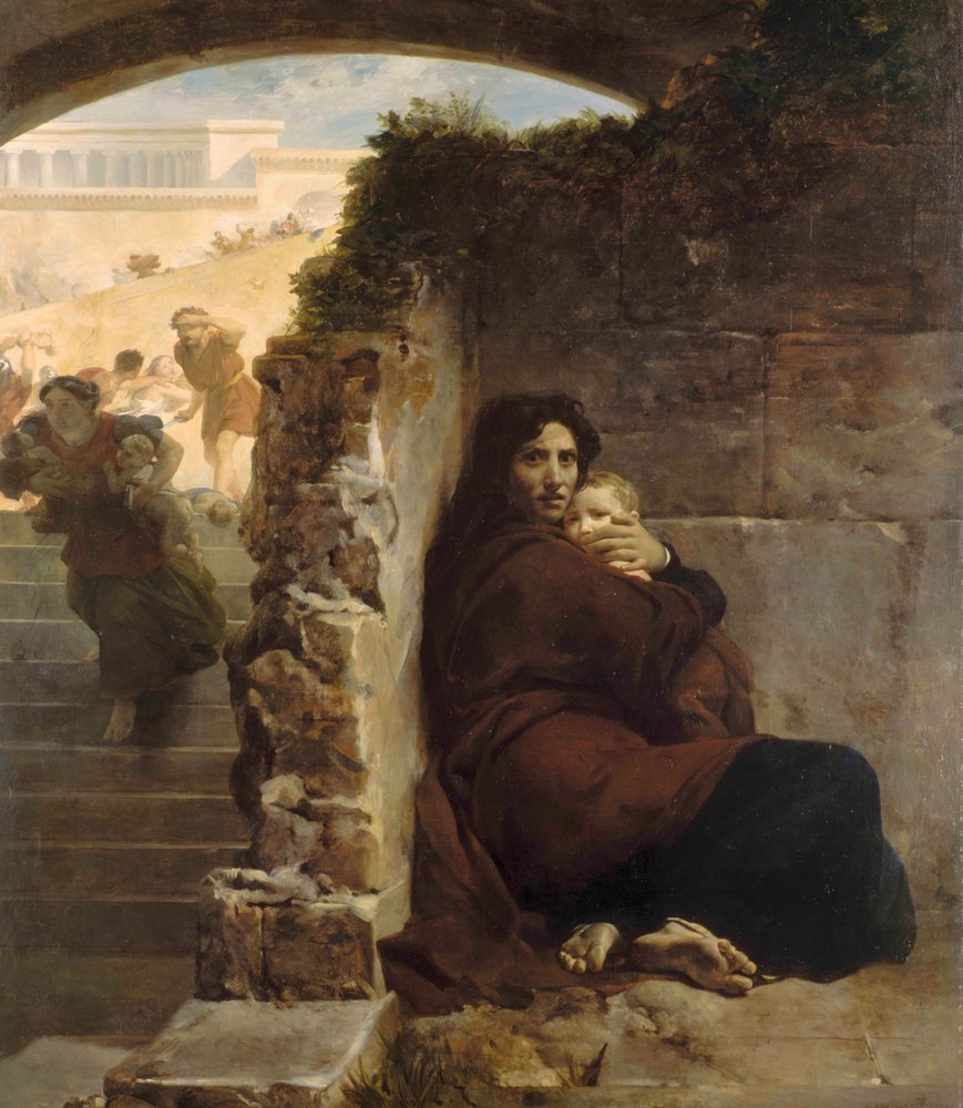 Fuga para o Egito e massacre dos inocentes —13 Após sua partida, eis que o Anjo do Senhor manifestou-se em sonho a José e lhe disse: “Levanta-te, toma o menino e sua mãe e foge para o Egito. Fica lá até que eu te avise, porque Herodes vai procurar o menino para o matar”. 14 Ele se levantou, tomou o menino e sua mãe, durante a noite, e partiu para o Egito. 15 Ali ficou até a morte de Herodes, para que se cumprisse o que dissera o Senhor por meio do profeta: Do Egito chamei o meu filho. 16 Então Herodes, percebendo que fora enganado pelos magos, ficou muito irritado e mandou matar, em Belém e em todo seu território, todos os meninos de dois anos para baixo, conforme o tempo de que havia se certificado com os magos. 17 Então cumpriu-se o que fora dito pelo profeta Jeremias: 18 Ouviu-se uma voz em Ramá, choro e grande lamentação: Raquel chora seus filhos e não quer consolação, porque eles já não existem.